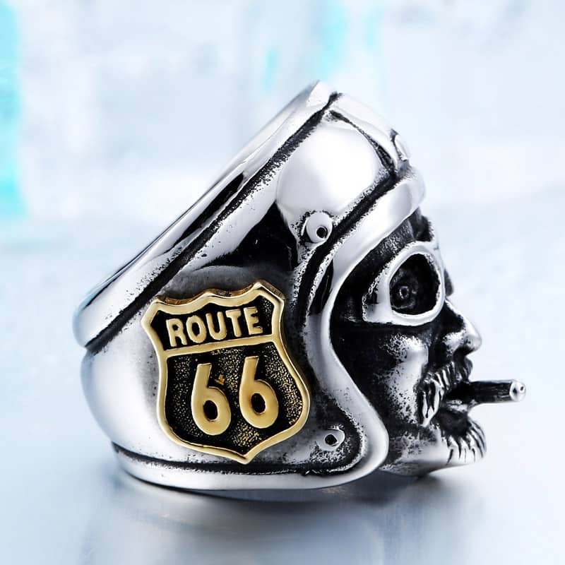 Anneau biker Route 66 en acier inoxydable pour hommes
