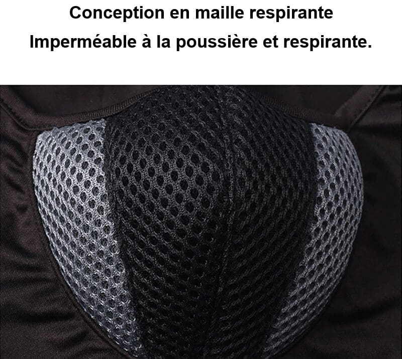 - Confort optimal : Anti-transpirant, Anti-UV, Coupe-vent, Anti-poussière
