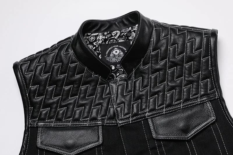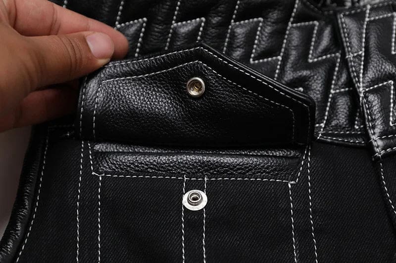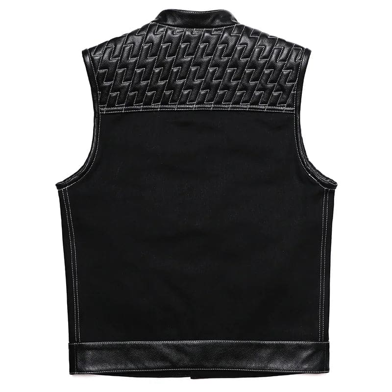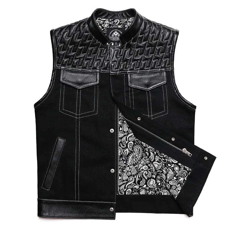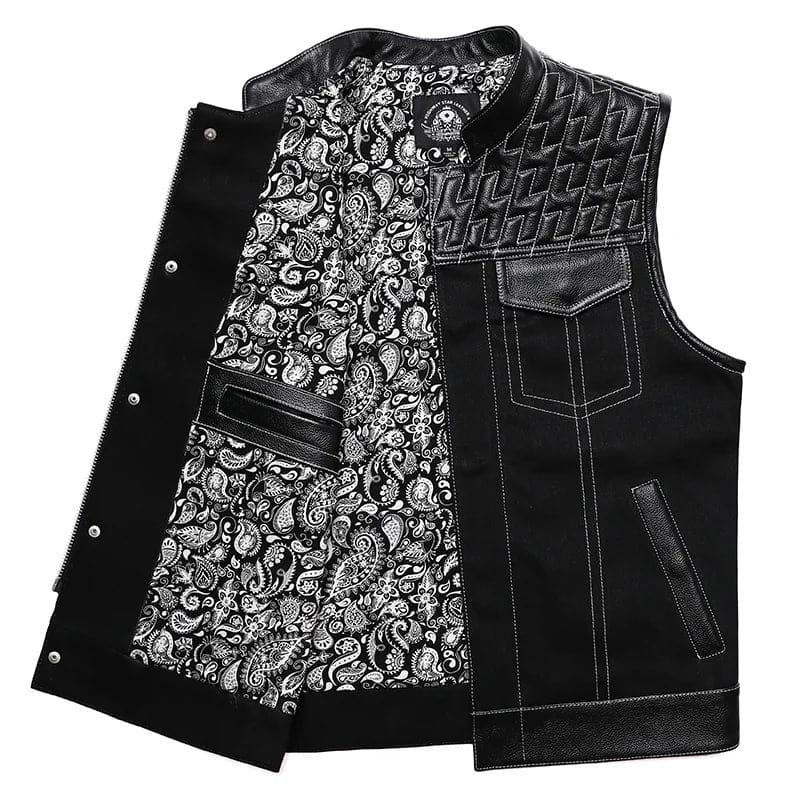 Gilet Biker en Cuir et Tissu SOA