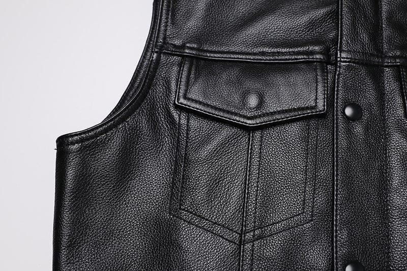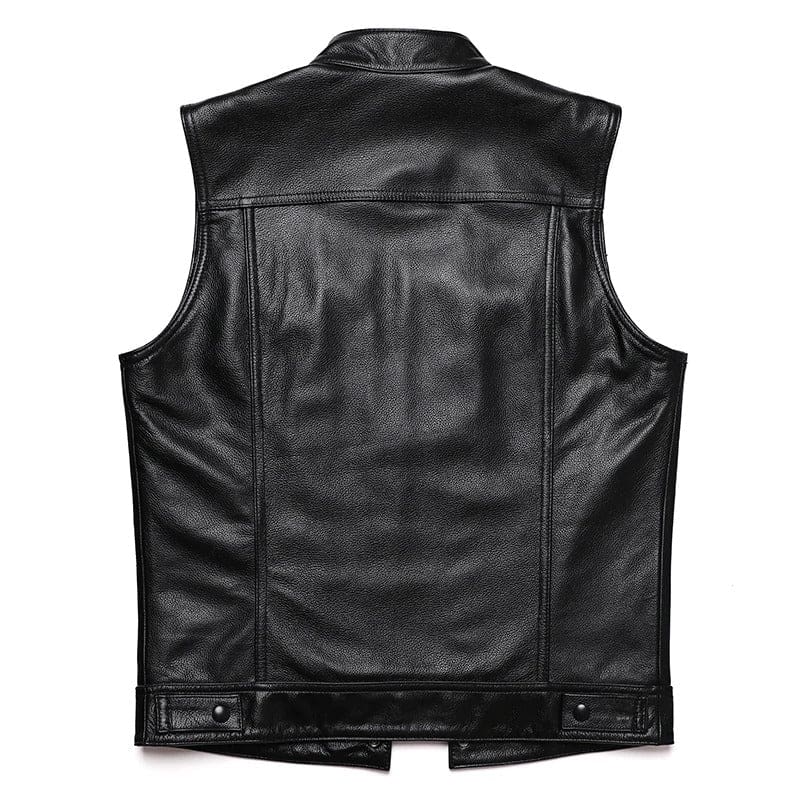 Exprimez votre caractère distinctif avec notre veste en cuir noir sans manches inspirée de Sons of Anarchy. Tirée de la fameuse série, elle symbolise l’esprit libre et aventureux. Idéale pour ceux qui refusent le conformisme, elle apporte une touche audacieuse à n’importe quelle tenue. Portez ce gilet biker avec un jean pour un look décontracté ou sur une chemise pour un style plus sophistiqué, il convient à toutes les occasions.
