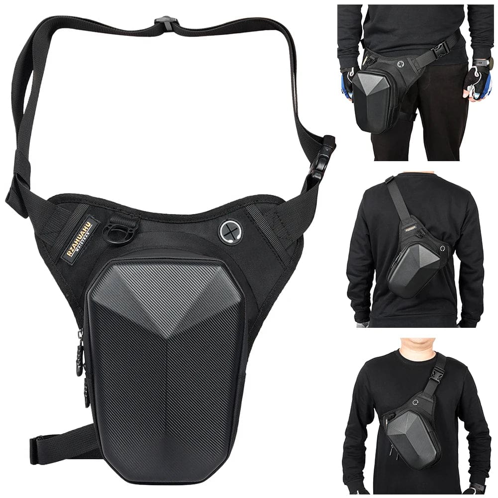 Sacoche de jambe en carbone noir pour conducteur de moto