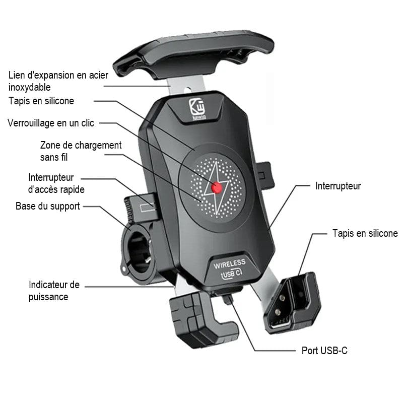 - Support universel, compatible avec tous les types de moto